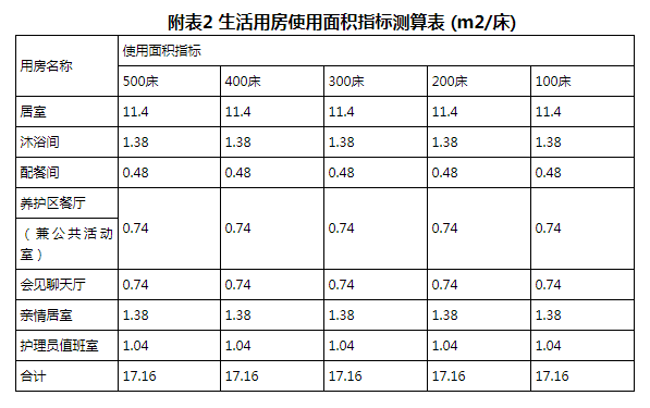 2.建设规模不足100张的参照100张床老年养护院的面积指标执行。