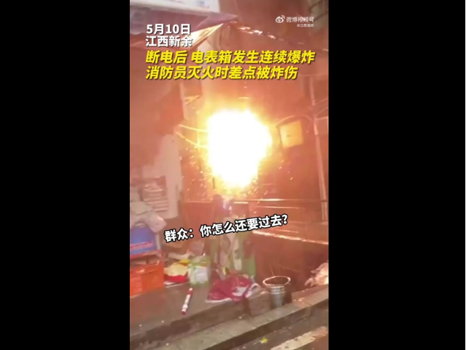 近日,江西新余一居民楼电表箱起火并伴随爆炸,一位消防员上前灭火,险些被火星炸伤很多网友看后心疼不已。