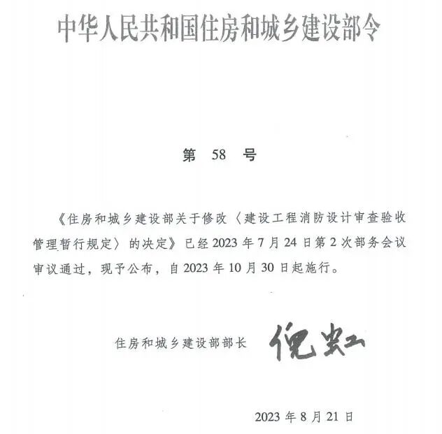 住房和城乡建设部决定对《建设工程消防设计审查验收管理暂行规定》(住房和城乡建设部令第51号)作如下修改:
